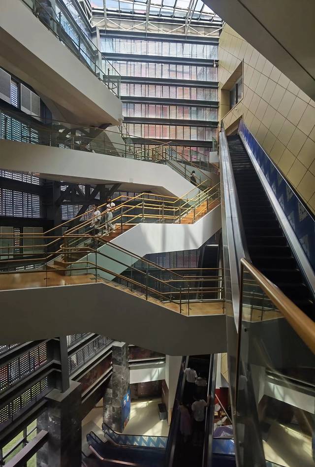 贵州省博物馆,位于贵阳市观山湖区,这是新馆,是2013年从贵阳市云岩区北京路的老馆搬迁过来的,为国家一级博物馆。从外部或局部或内部看博物馆的整个建筑,我觉得这个博物馆是民族风+现代风=别具风格。