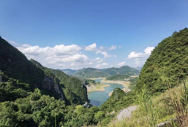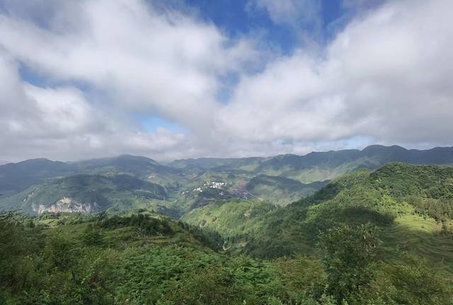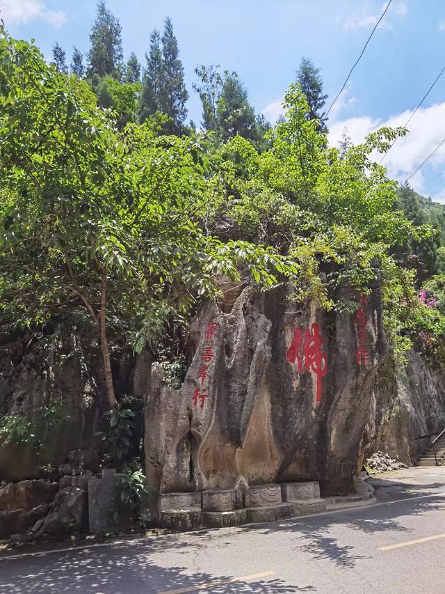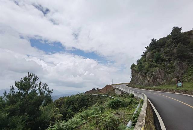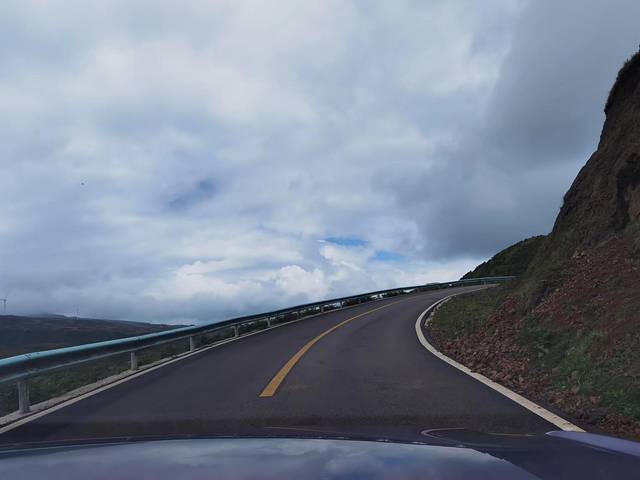 一路上,群山峻林,幽谷峭壁,随处可见,随着车辆的行驰,角度方位的移动,景色不断地变换着,有的远在天边,有的近在眼前,有的一目了然,有的若隐若现,这时止不住的车速会放慢、刹车会急踩,下车忙着三连拍:哇塞!这里很美啊!路上的风景着实给了我们一个小惊喜。