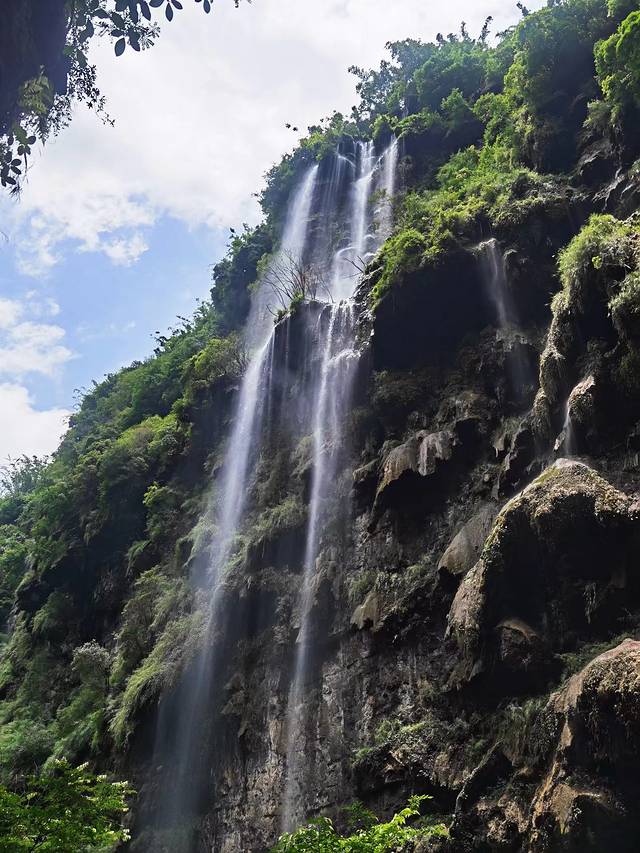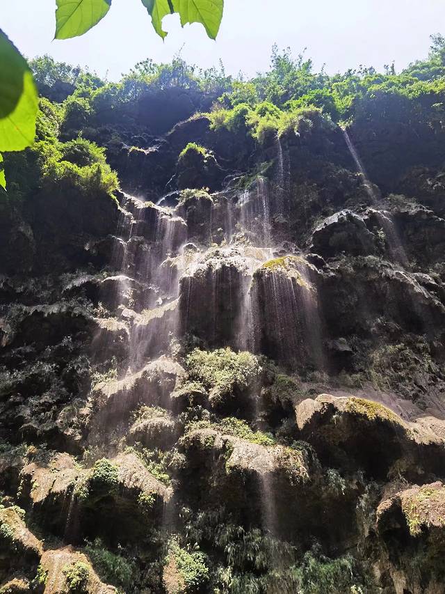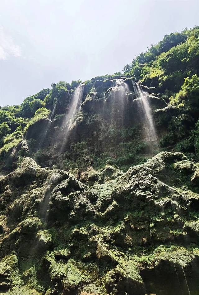 看瀑布最好是雨后,尤其是强降雨后,水势大,瀑布流量大,很是壮观,我们去的时候,水势并不大,看出来的气势也不是很恢宏,但换角度、换方位看这些瀑布群,还是可以看得出这些瀑布群的不同风格,或磅礴或婉约,或飞泻或垂帘,有感这些瀑布的美妙,又写不出美妙诗作,串了一首前人的名诗佳句:瀑布岩前水满溪,雷奔入江不暂息,瀑布之水源何来,丫山道人定初起。
