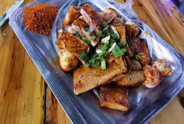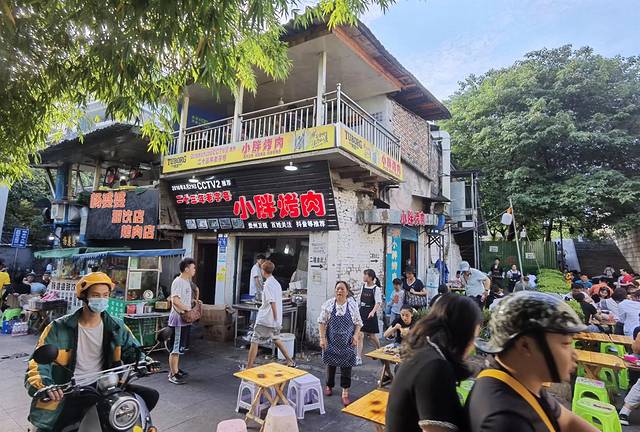 经过打听,知道这条街叫电台街,是贵阳很有名气的小吃一条街,这家“小胖烤肉”,占据了路口第一家的地理位置,二十多年的磨砺终于熬成了网红。看到这道风景线,让我大庭广众之下,哈喇子淌了一地,太难为情了。
