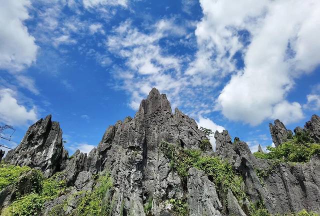 这些石头,有的像人物、有的像动物,有的形似,有的神似,姿态各异,千变万化,活灵活现,栩栩如生,什么寿龟问天、神掌穿云,什么飞鸽传音、奇蚌藏珠,什么天狗望月、蛤蟆向天,什么天兵神象、野牛卧岭,泥凼石林里的石头属于薄片型石牙石林,主要特点是孔洞多、形状多,造型丰富、栩栩如生,神奇秀美、美在奇绝,行走在在奇峰林立,怪石高耸之间,犹如行走在一个天然的迷宫。