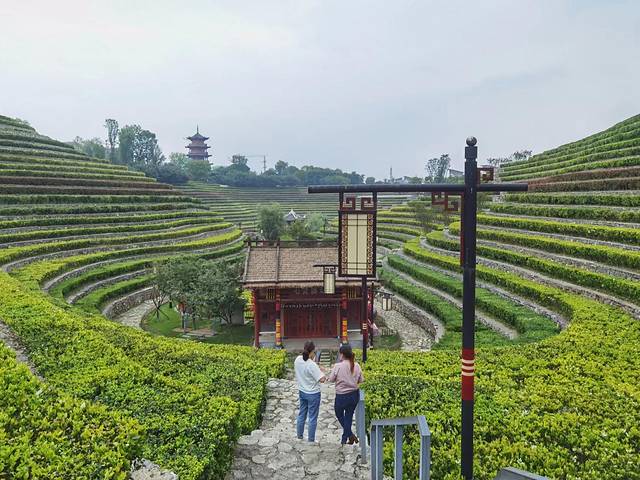 二看漏斗。在茫茫峰林之间、广阔的田园之中,散布着一个个宽而浅的碟形漏斗,层层梯田以漏斗为中心,弧形布展,构成奇幻的太极八卦图案,这种喀斯特漏斗洼地,星罗棋布,神秘莫测。