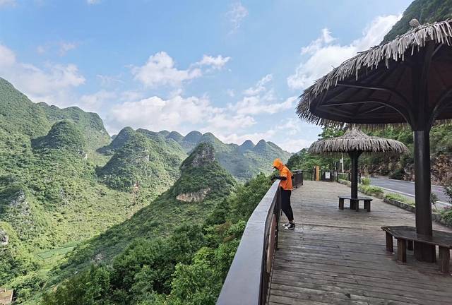 途中有个叫“天坑驿站”的观景点,是看窝坑和峰林景观的,发现这里的景色和万峰林相比较的话,万峰林是大家闺秀,而这里是小家碧玉,这里没有旅游团队带过来,显得格外的清静,觉得这里的景色不输给要门票的大景点,所以一定要种草!种草!种草!重要的事情说三遍!重要的事情说三遍!重要的事情说三遍!