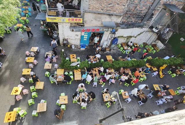 几条窄窄的夹弄和巷子,都放满了小桌子、小凳子,这是什么情况?此时,大概是17:00左右吧,很多座位都坐满了人,还有人在等位,有的人已经开始拼命撸串烤肉了,难道贵阳人民的夜生活这么早就开始了?!