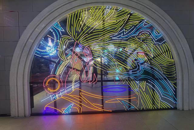 这里有一幅长达60米的巨型天幕,天幕到点会播放油纸伞、自然山水、苍鹰翱翔等画面,一会儿是浪漫的樱花雨巷,一会儿是绚烂的黄金大道,一会儿是鱼群穿梭的海底世界,一会儿又是万里雪飘的冰封北国……还有配合画面,造雪机喷出的雪花、烟花机喷出的烟花等,营造了一种浪漫、唯美、时尚和新潮的氛围,加上如幻如梦的背景音乐,身临其境,恍如置身于童话世界,带来了不一样的体验感,怪不得到贵阳打卡后都会说:这里的地铁站是一道独特的风景线,有着一股魔力。