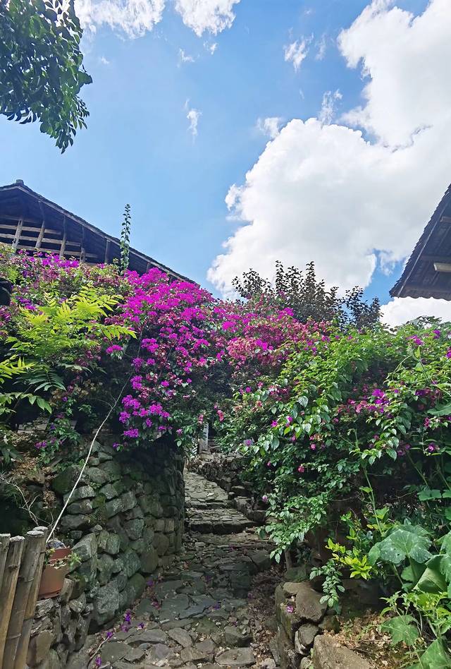 走过南龙布依古寨的一条条小路,发现大榕树、石板路和吊脚楼是古寨的“标配”,又发现所走之路,全部是由大小不一的石块板铺就,小路两旁茂密浓郁的大榕树,古老质朴的吊脚楼,告诉人们这是一个典型的布依族的山寨,走在这样的小路上,与走在平整的水泥路、柏油路上的感觉是不一样的。
