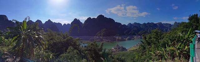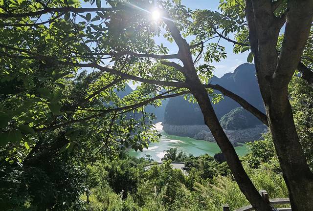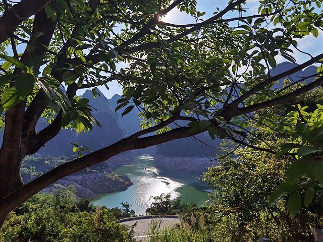 很遗憾,由于水位处于低位,游船不开,连码头都不让我们下去,保安说是下午16:30以后就不让进去了,很是无奈!我们只好沿着湖岸线,在山路上绕着欣赏这个湖光山色了,尽管没有看到万峰湖的全貌,只看到了冰山一角,但它的迷人的一面还是有被撩到,不由得诗兴大发: 万峰林中万峰湖,山光水色画一幅;轻舟悠悠泛峡谷,山川绵绵通天路。