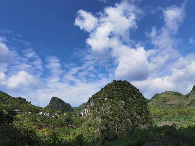 在半山腰是远看万峰林,走进山寨,是近瞧万峰林,沿着山路,在峰林中疾驰,只见:峰内有谷,谷内有峰;峰里有田,田里有峰;峰下有寨,寨里有峰;看着看着,只憋出了两个字:真美!