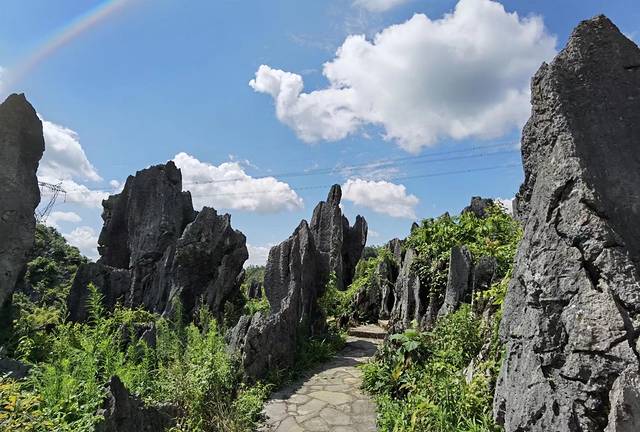 蓝天+白云+彩虹+奇石+田园=风光无限,这是我看了泥凼石林后的深刻感受,这里其实不比云南的路南石林差,如果说路南石林是个精致打扮、精心包装后的当红明星,那么泥凼石林就是一个天生丽质、没有涂脂抹粉的的清纯村姑,路南石林有个阿诗玛,泥凼石林让我找找有么有阿黑哥!