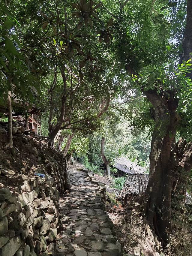 踏遍了寨里的石板小路,发现寨里的小路的确是互相贯通、变幻莫测,走过路过,所见景象似曾相识又颇为陌生。整个寨里静极了,两只小黄狗在晒太阳,见到生人也不叫唤,和它们耍了一下,手工蜡染和古法酿酒两家的人,不知道都去哪儿了,很遗憾没有看到这两种民间手工艺的现场操作,想着会不会有人在山道上牵着牛过来,可以抓到一幅好的画面,也是遗憾的没有捕捉到,人生总会有遗憾的,也总会有机会的,对吧!