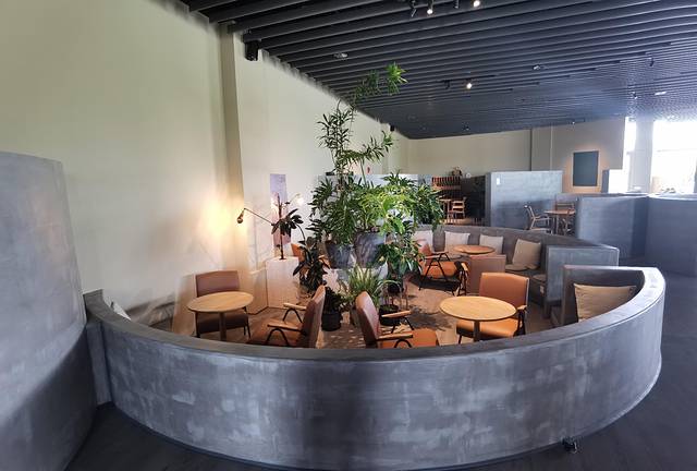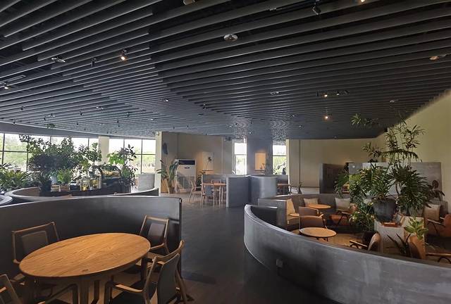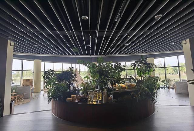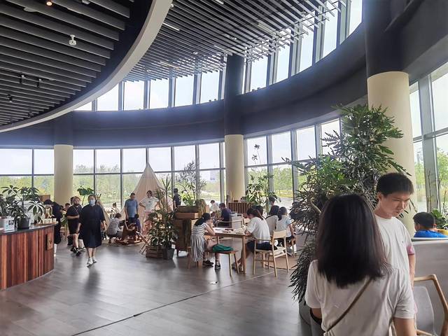 咖啡馆的空间挺有特色,大块的落地玻璃窗+挑高的空间+随处可见的绿植,给人感觉很大气,咖啡馆通过玻璃窗,又把外面的湿地风景引入了馆内,自然巧妙的融为一体;馆内有开敞的大空间,可以小众聚会,也有私密的小空间,可以两人叙旧,还有湖畔的小帐篷,可以独自遐思,空间设计很nice。