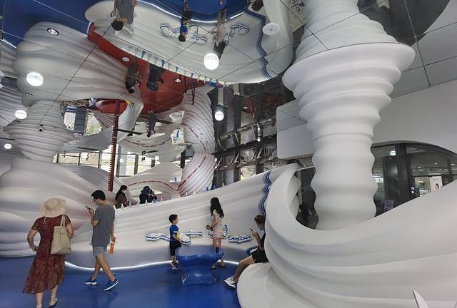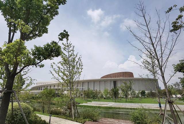 这里是一个天然氧吧,艺术中心整体造型,俯瞰之下如一颗萌芽的种子,艺术中心的亮点就是有国内独一无二的森林剧院和水秀剧场,据说,取名为“九棵树”,是因为在艺术中心的北侧,栽种了九棵银杏树。