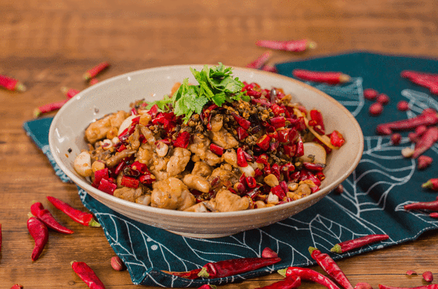 不同于川渝“鸡肉少辣椒多”的吃法,贵州辣子鸡以鸡肉为主。