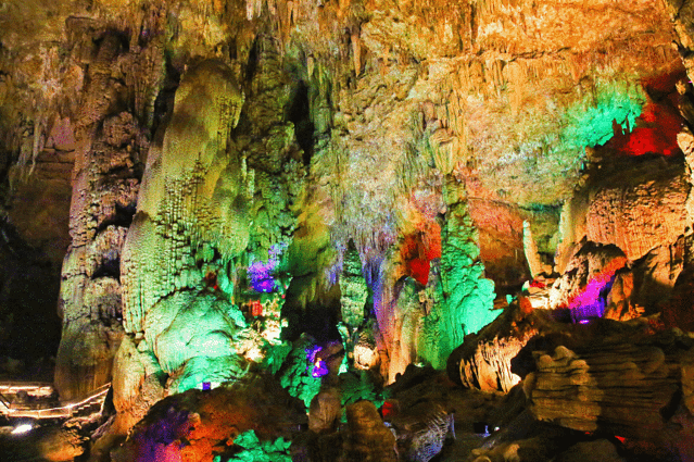 龙宫景区溶洞伏流、天桥石林、悬崖绝壁、峰丛幽谷。