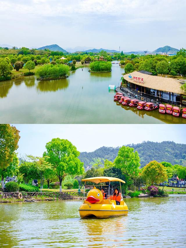 脚踩小黄鸭,或开着老爷船在灵峰湖上体验嘉乐比的田园风光