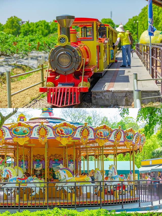 乘坐一列嘉乐比号小火车在桃林里穿梭,欣赏美丽的自然风光