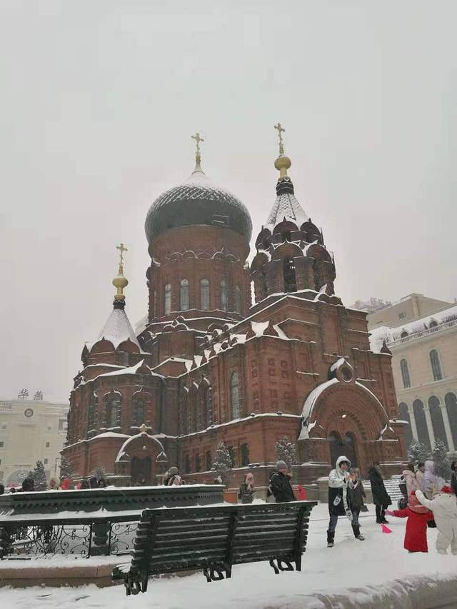 早饭过后,穿戴完毕,出发直奔索菲亚大教堂!索菲亚大教堂是游玩哈尔滨必去的景点之一,典型的拜占庭十字建筑风格,是沙俄侵略中国时建立的随军教堂,也是历史的见证。教堂为纯木结构,后为加固,又在外部包上了红砖。我去的时候人比较多,建议早睡早起早点去,这样可以拍到很棒的照片,尤其是下雪后!