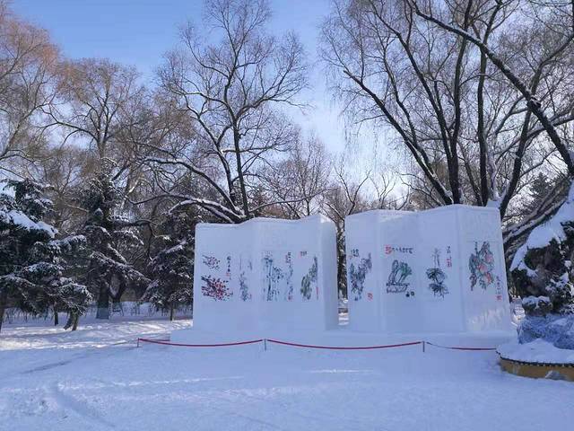 从博物馆出来已经是四点多了,去哈工大吃个便饭,便宜也好吃,顺便逛了逛这东北的知名学府。2020年正好是哈工大建校100周年,校园内有各种冰雕,配上绚丽的灯光,甚是好看!(手机冻关机了,原谅我再次盗图......)