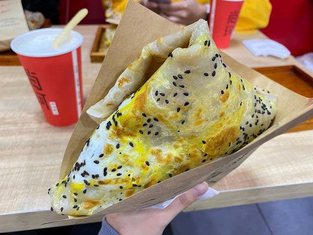 17块的煎饼我能吃一天,这里的豆浆巨巨巨好喝,一定要尝尝!放一会上面一层皮,不加一滴水