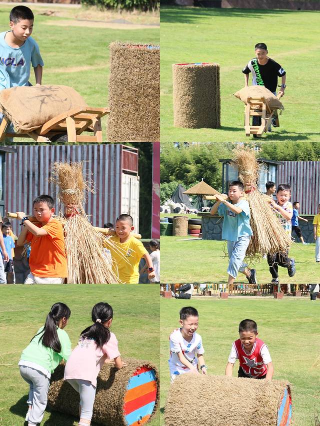 通过滚草垛来体验农事后丰收的喜悦,活动以孩子们互相合作完成,增进孩子们的团队协作能力