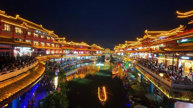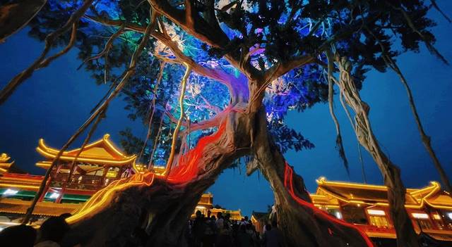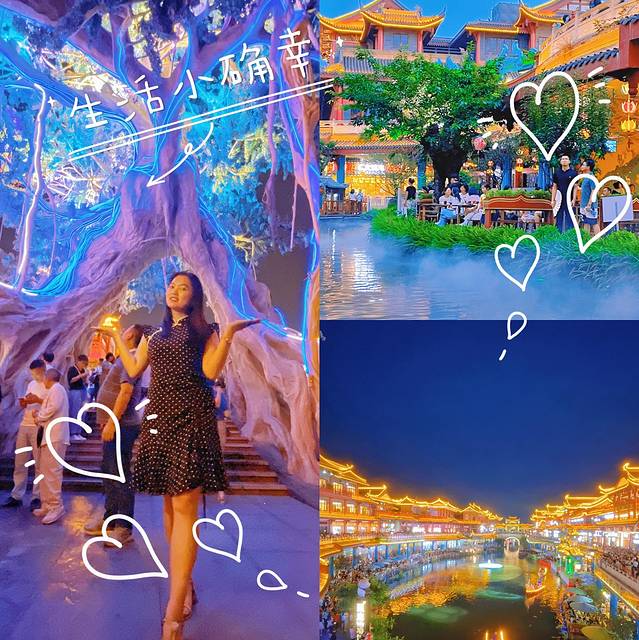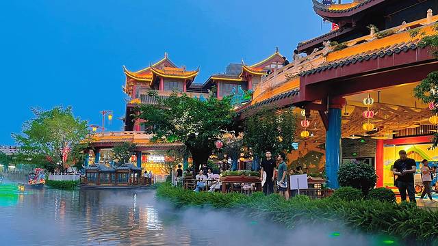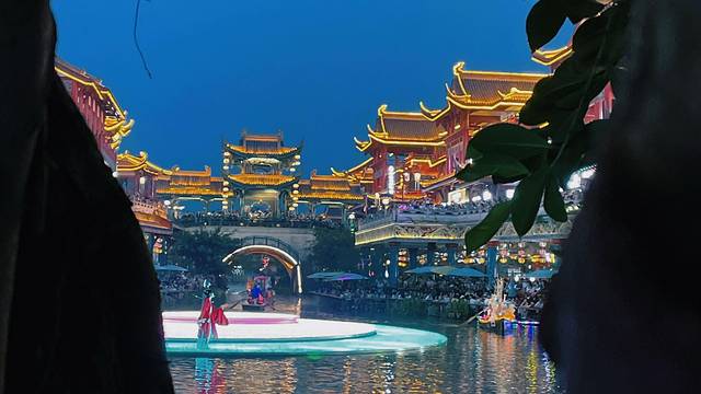 🌵穿越城水街内的设施比较用心,有大家熟知的大树,有每月升降一次的龙椅,还有舞台表演。穿越城不像东坡里水街有游玩设施,这里只有付费的湖心划船品茶。穿越城水街每晚也有舞台表演,表演形式也颇为丰富,舞蹈、唱歌、古筝等多种形式,但是这里面就有一个很大的槽点,就是穿越城表演里面有唱歌对口型的,古筝做假动作的,瑕疵太明显了好多人都在吐槽。但是风光效果穿越城应该是三个水街里面最好的,拍照效果感觉大气有格调。目前穿越城人气是最旺的,满街都是大妈旅行团,把整个水街弄得非常热闹。