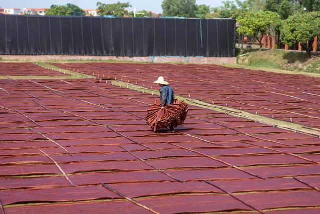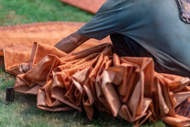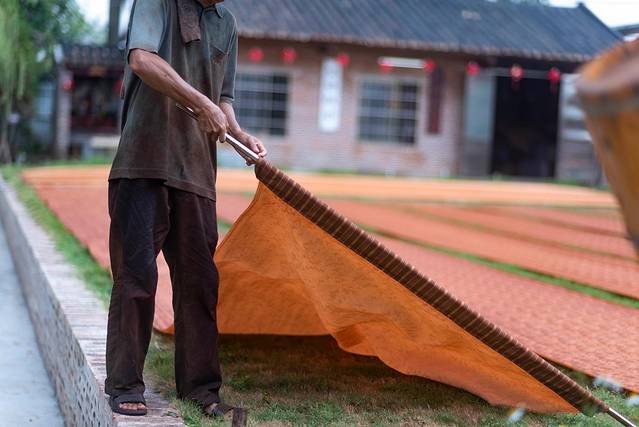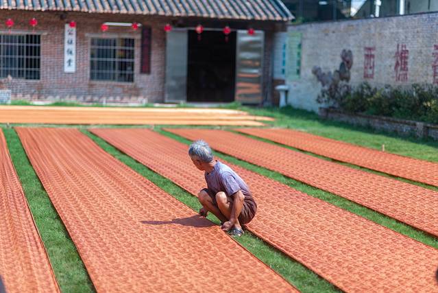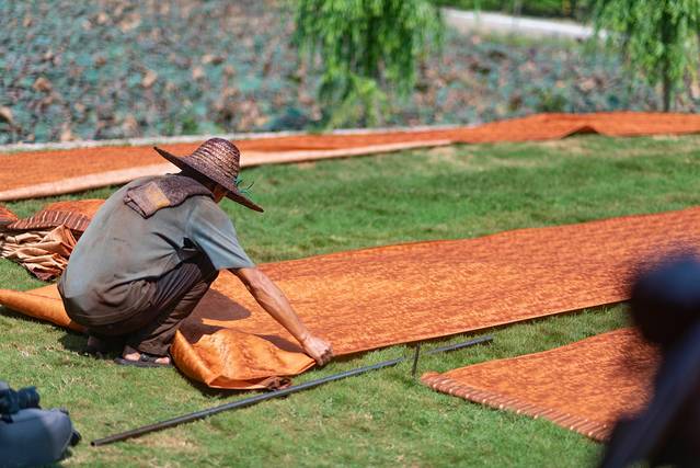 在这里会发现不少晾晒在地上浸莨过的绸料。