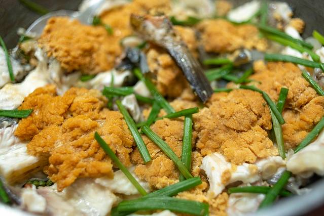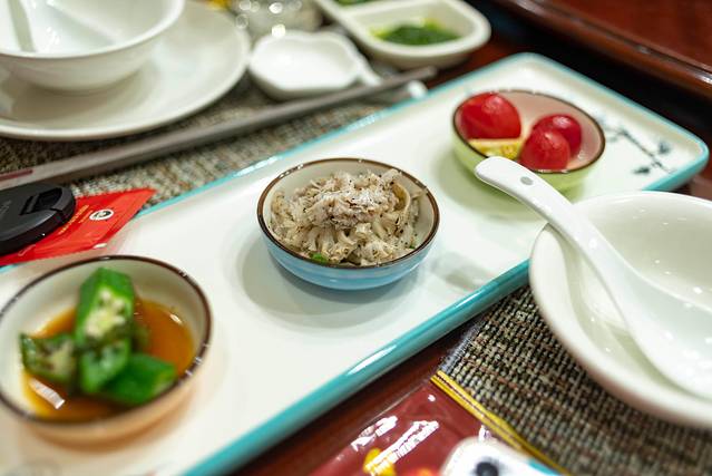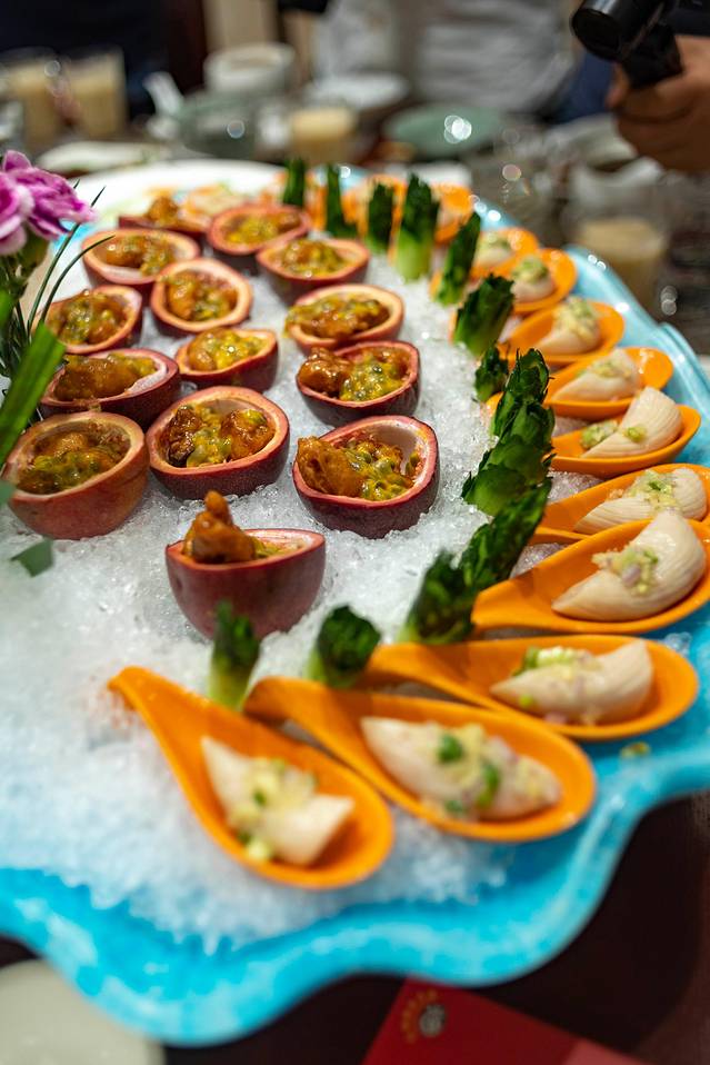 基本每道菜都还很Ncie,最惊艳的就是冰镇花雕生肠拼百香果咕咾肉,我平常不吃猪肠,怕有异味,但这个真没有任何异味,口感非常的爽脆,据说制作时间要5小时以上,爱了。