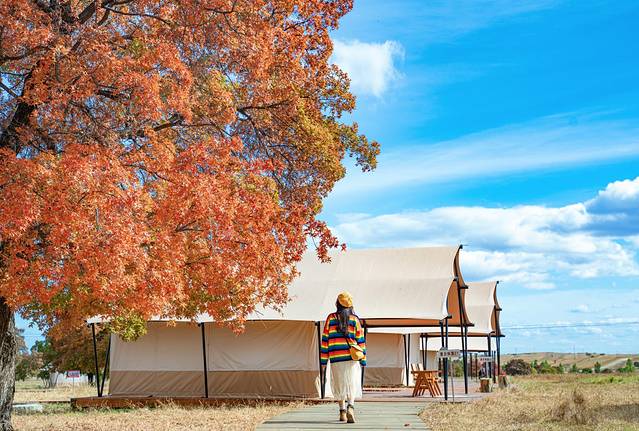 在五角枫景区里,也有高颜值的轻奢营地了。营地的帐篷有二种房型可供选择,一种是轻奢帐篷的大床房,房间内设施齐全,还有独立的卫浴,和供暖的空调,以及24小时的热水供应。