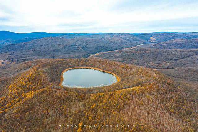 阿尔山天池,位于阿尔山市东北74公里的天池岭上,由火山喷出物落在喷火口周围形成一道环状围墙,中间形成圆形凹坑,多年积水而成。