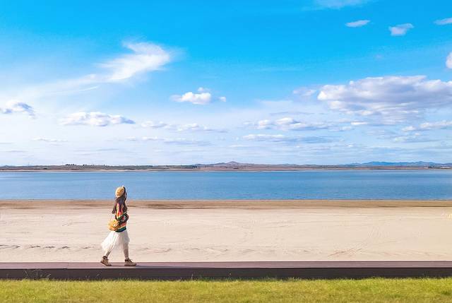 这里有松软的沙地,白色的房子,网红的水上餐厅,是一处难得的天然沙滩阳光浴场。这里就是内蒙古“马尔代夫”——翰嘎利湖。