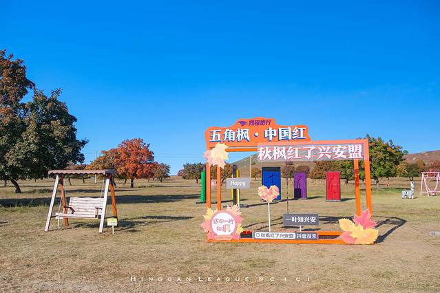 一定要来一次秋天的兴安盟,一定要来看一次五角枫,去听枫剧场看表演,听片片枫叶细语,去瞭望台,看枫叶染红漫山遍野,绵延到天边。