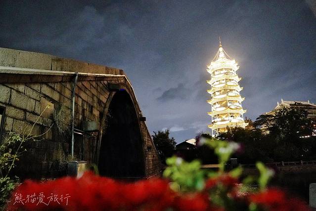 站在桥上,眺望被灯光勾勒的万佛塔,还有古运河两岸的梭织状街巷,想象曾经明清时期江南运河商贸重镇的热闹景象。晚风拂面,半胧淡月,在静好的岁月里任时光老去。
