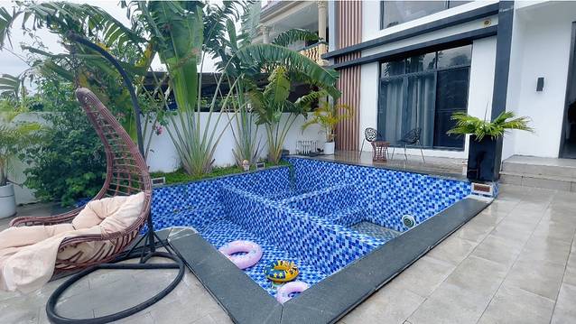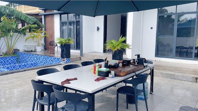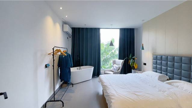 我定的是一间缙云小住套房,首先对这个民宿的印象就是干净,因为是新装修的,从大门进去会看到一个温泉泳池,那时候是早上水都放掉了,等需要时会再住满,池的对面有一张茶桌,玩累了可以泡泡茶,休息,去客房时感受到楼梯间的清净,房间门是电子密码锁,不用担心出门断电的情况,开门的右手边是一个长吧台,尽头有一个冰箱,整体是一间套房正对是一张床,隔壁有沙发和电视可以吃饭休息,阳台可以直接看到楼下的温泉,视野开阔,屋内卫生间干净整洁,洗手池在外面,洗漱用品很精致,花洒水流舒适,最里边的房间有1.8的大床,还提供一个浴盆非常舒适,这次是临走三亚的最后一天,送机服务很准时,下次来三亚还会再来,也祝酒店的生意会越来越好!