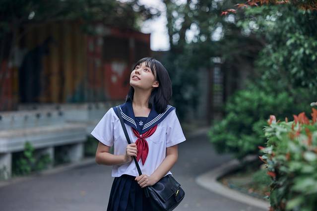 2.转变服饰风格:穿戴不同的服饰可以拍摄出风格不一的图片。如果你喜欢“小清新”,那么学生服配上背包,加上青春洋溢的笑容,瞬间梦回青春校园~
