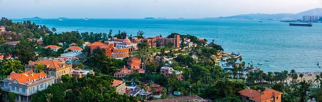 岛上还有许多古朴优雅的建筑,既有古典复古的欧美风情别墅,也有经典的燕尾式或马鞍式的红砖闽南民居,还有中西并蓄的风格。虽说是秋季,但依然可穿短袖长裙,站在道路边、建筑旁,拍下随意慵懒的姿态,文艺范儿十足。