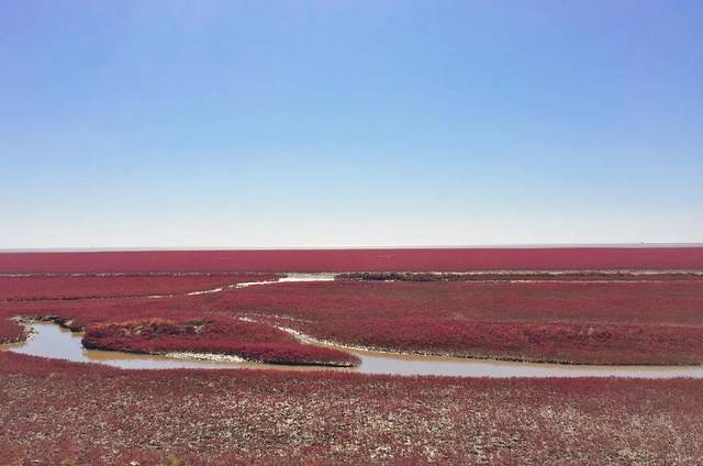 每年的九、十月份,红海滩才有令人震撼的红色。即便看过很多照片,但只有亲身到此,才能感受到它竟如此宽广、如此鲜红、如此绵长。