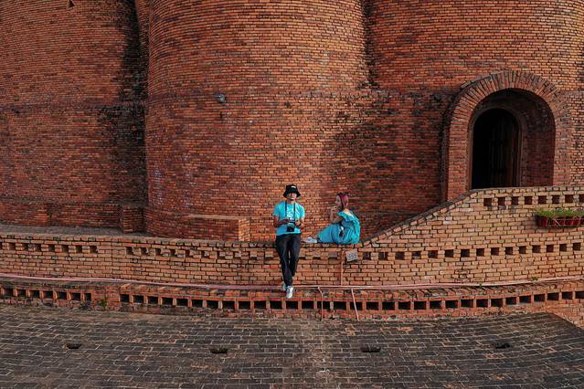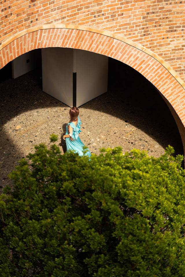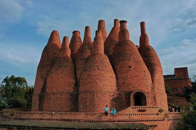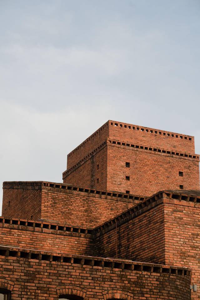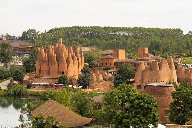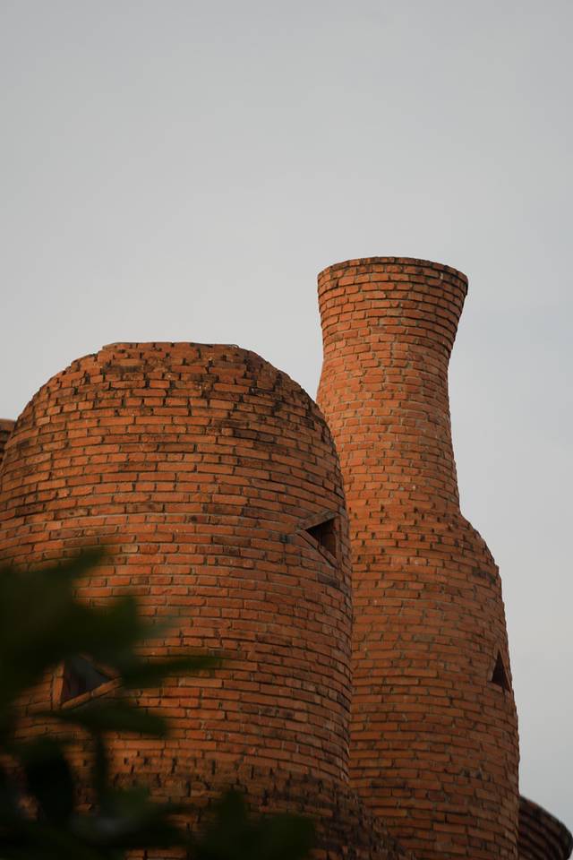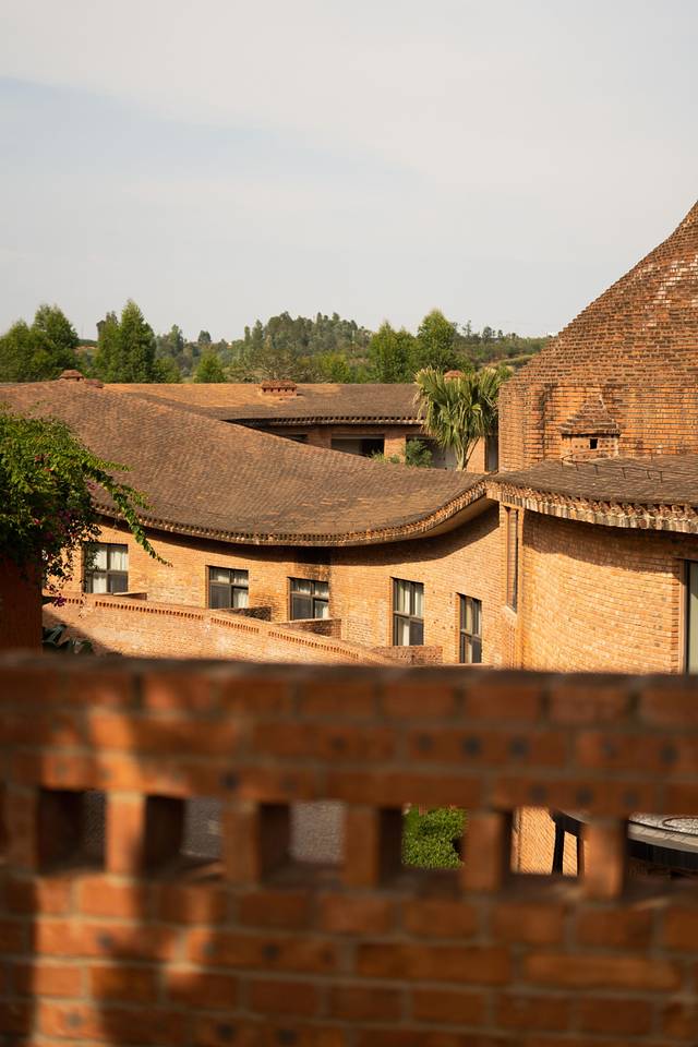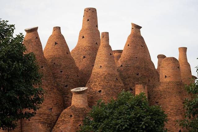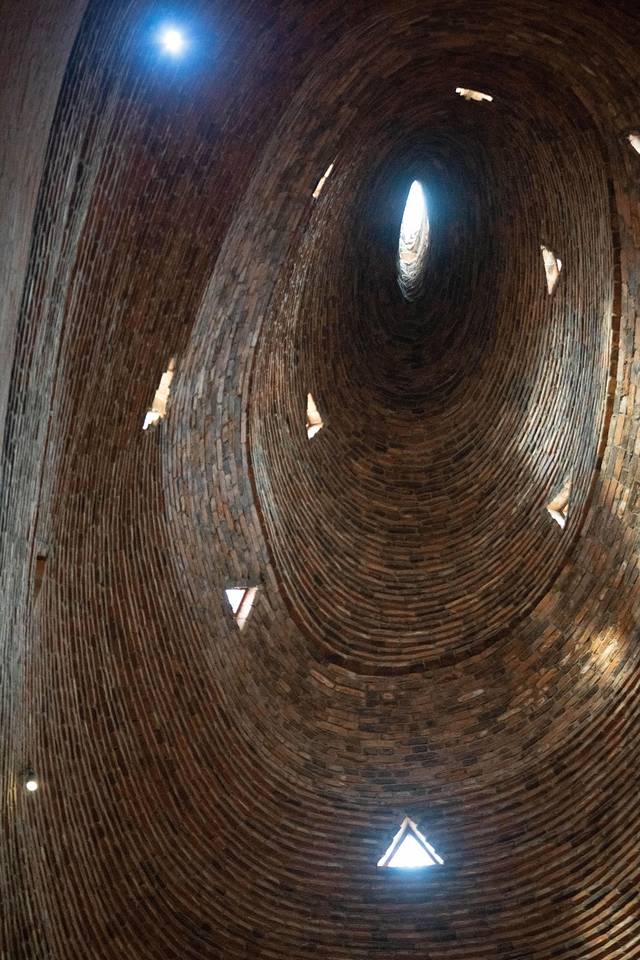 这里的建筑搭建很神奇,没有用到一根钢筋水泥和木料,通过几何结构原理,用红土烧成的红砖,一块块交错搭建起来的。