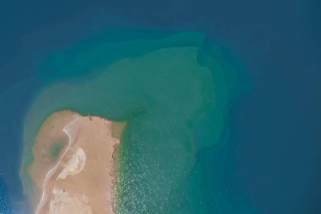 但是升起无人机的那一刻,瞬间惊呆了,这里的湖水在太阳的反射下出现好几种颜色,比站在岸边看湖面美多了!