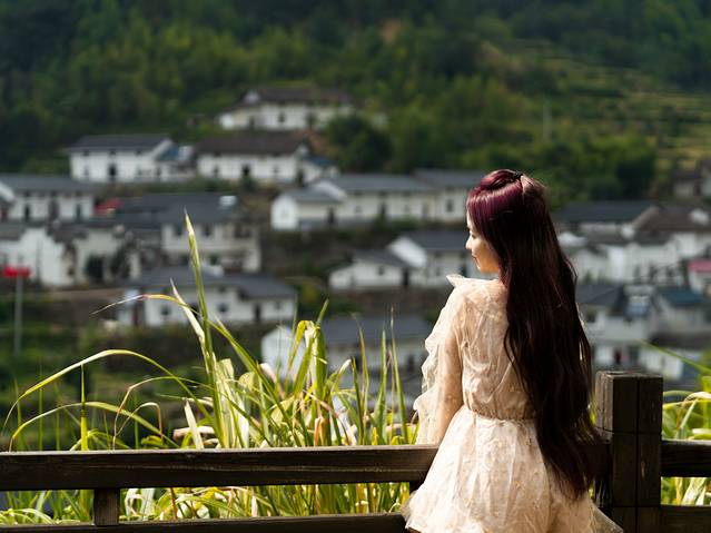 远处的房子和梯田都可以作为拍照背景,都很好看。
