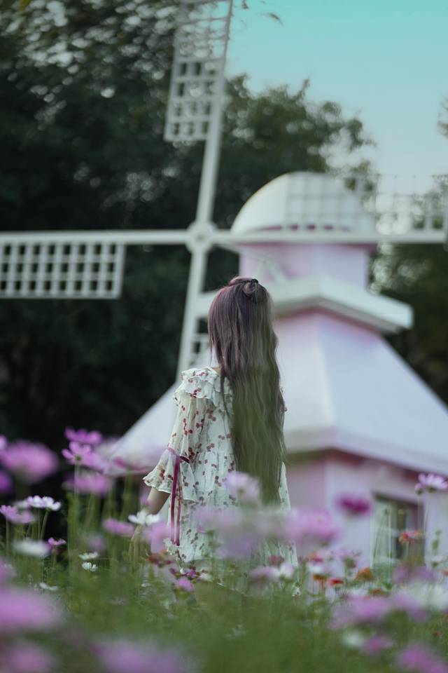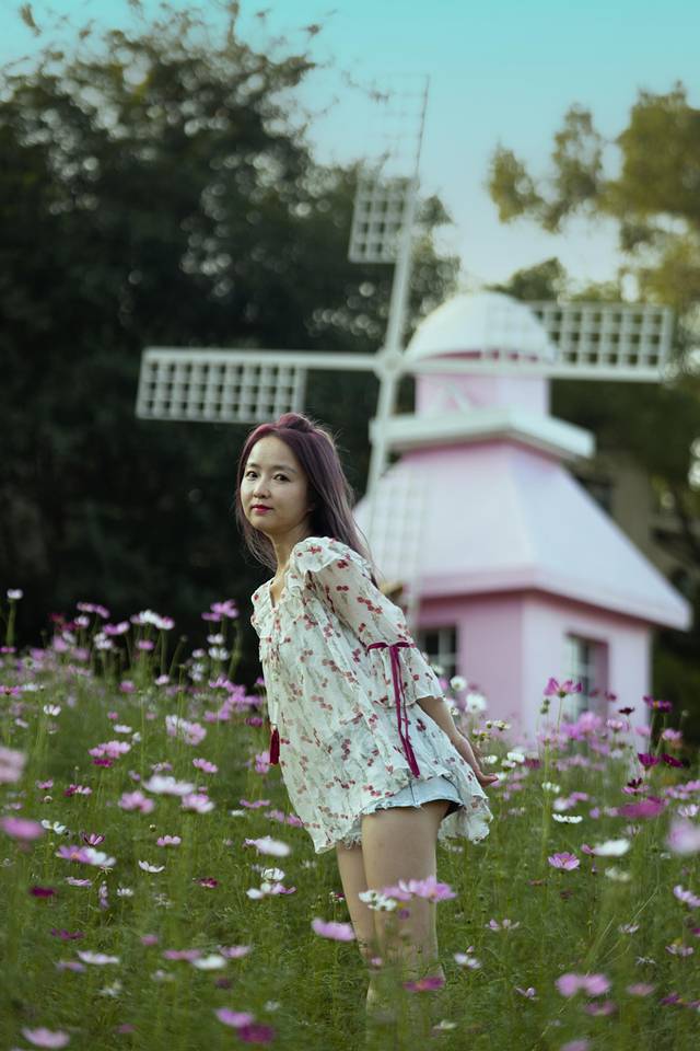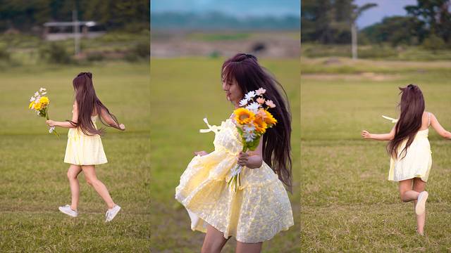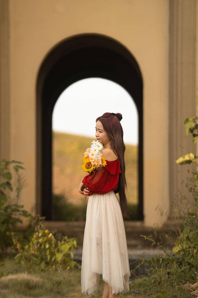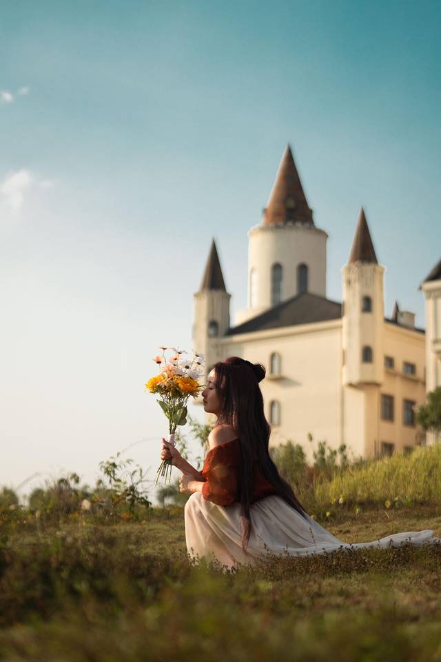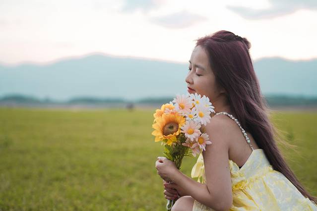 也推荐带一些花之类的道具在手上摆拍,超有氛围感(还能帮脸挡掉点太阳防晒…)
