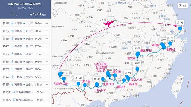 之前说了,这版行程的终点一开始就定好在昆明,所以最早是想以“沪昆高速”为基础制定路线的,小爸还给取了个土味名字:“沪昆大动脉”… 结果被我弄的越跑越偏,完全偏离了。