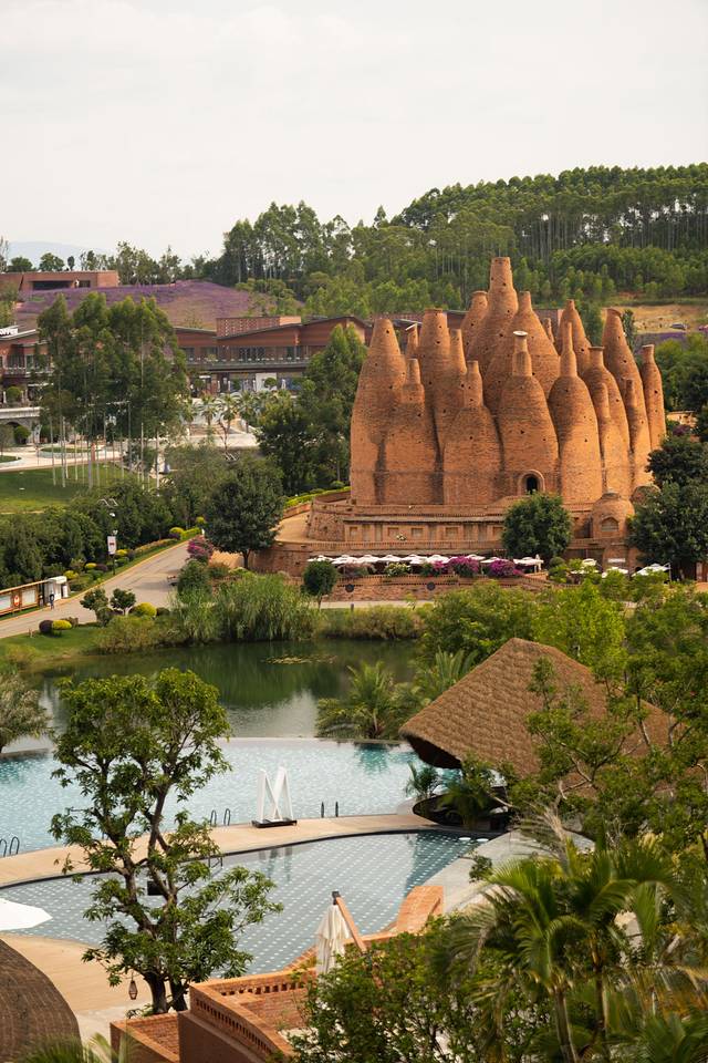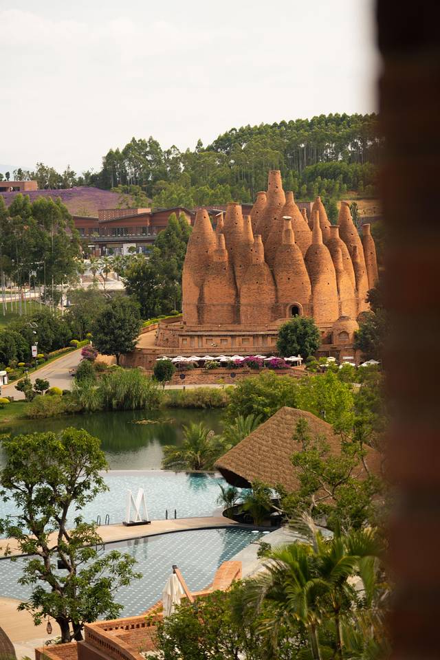 因为这家酒店分为好几个楼,每栋楼都有不同的主题风格,我们这间是在主楼,也就是大堂办入住的地方,离停车场是最近的,而且也是唯一一间有3层楼的房子,其它副楼都只有2层楼,我们选的“缇印套房”都在3楼,视野上是最好的,拥有270度的观景阳台,既能看见其它几栋楼的景色,还能看见对面东风韵的万花筒建筑。