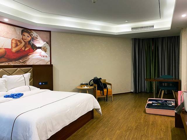 贺州的中途落脚点,这里属于少数民族自治县,酒店外观和房间都带点民族元素,这家酒店在当地属于比较好的酒店了,有独立的停车场,还有新人在这里办婚礼。定的基础房型写的是20平,实际房间很宽敞,至少有30平。