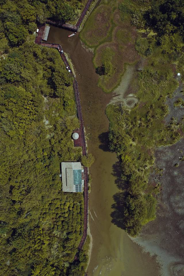航拍视角下画面也很好看,周围都是平地,这栋建筑显得尤为显眼突出,又和草坪的交相辉映才能形成如此氛围感的绝佳拍照地。