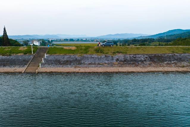 在前一晚入住仙女湖景区旁的酒店,快抵达前,路过了一个水库,水非常清澈,面积不大,但是没有人非常安静,很适合航拍,正好赶在天黑前飞了一圈。
