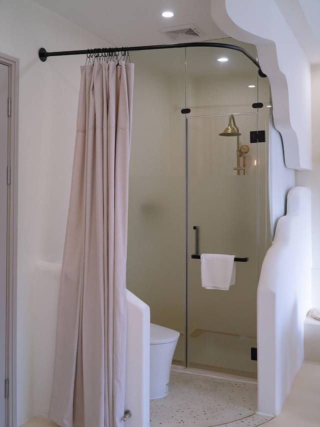 房间有45平,很宽敞,打扫的也特别干净,纯白风格是最容易看出脏的,他们家连淋浴房的死角都干干净净没有一点污垢。