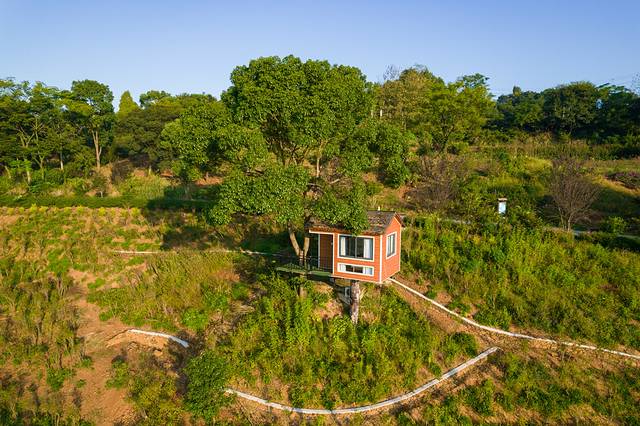 景区民宿最富特色的房型,吸引了众多游客前来打卡。根据造型主要分为三种,“子弹头”、“南瓜”和普通树屋。