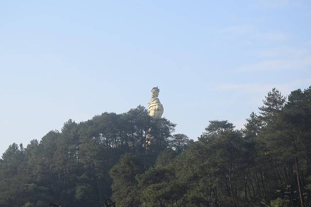 吃饱了上山啦!!!先拍个山脚的图片。站在景区入口回头可以看到龙母庙的龙母像。
