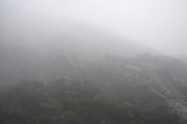 我们就是这样上山啦,一路上下着雨,山路崎岖,雾气氤氲,对明天的旅行表示出担心呀。