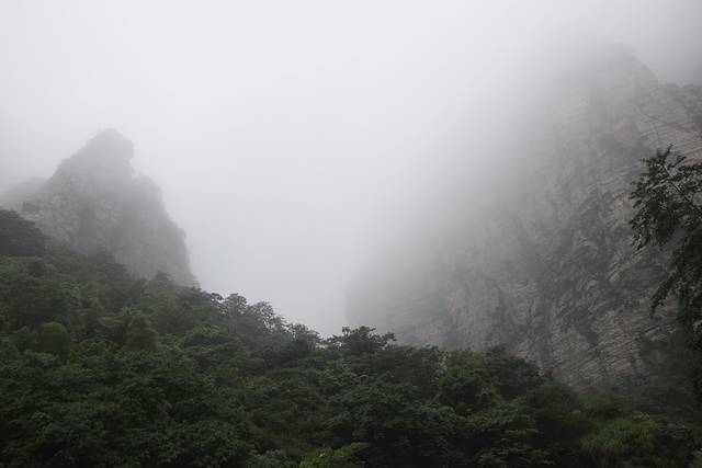走着走着雾气越来越大,到了龙首崖,一个大好山河尽收眼底的景点,我的眼前是这样的: